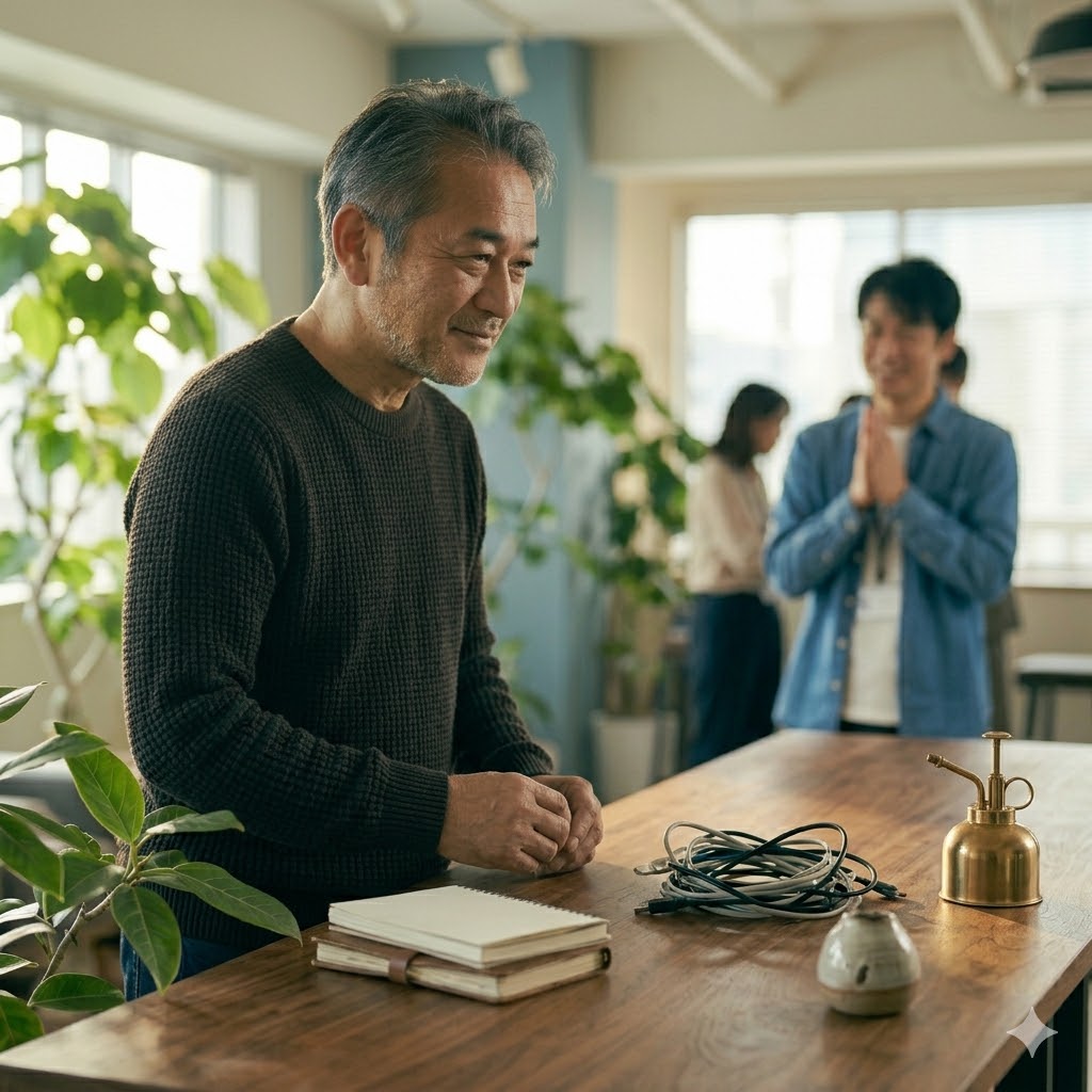 自分がそこに座っているだけで、なぜかメンバーがリラックスし、なぜか情報の風通しが良くなり、なぜか大炎上が起きない。若手が少しの煙に巻かれているとき、すぐに消火器を持って駆けつけるのではなく、彼らが自力で火を扱えるようになるまで、燃え広がらない程度の「湿度」を保ちながらじっと見守る。